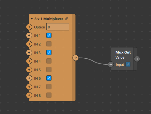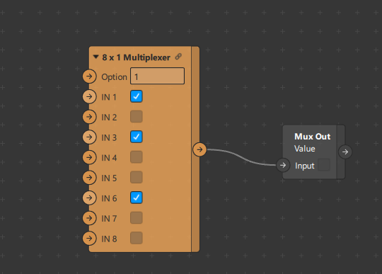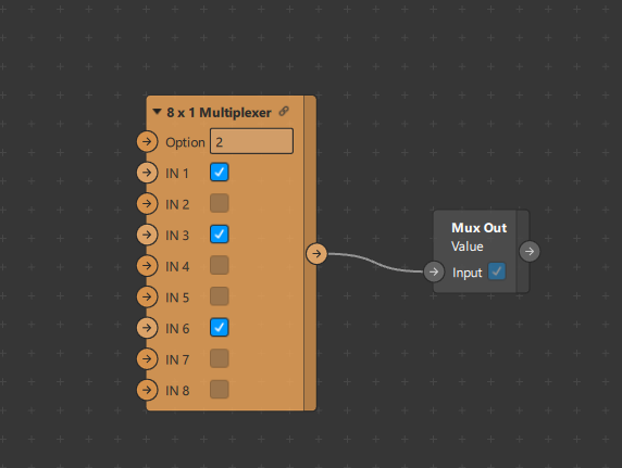 Implementation of 8x1 Multiplexer in SparkAR. Can be used to assign a specific boolean value to the output using the option